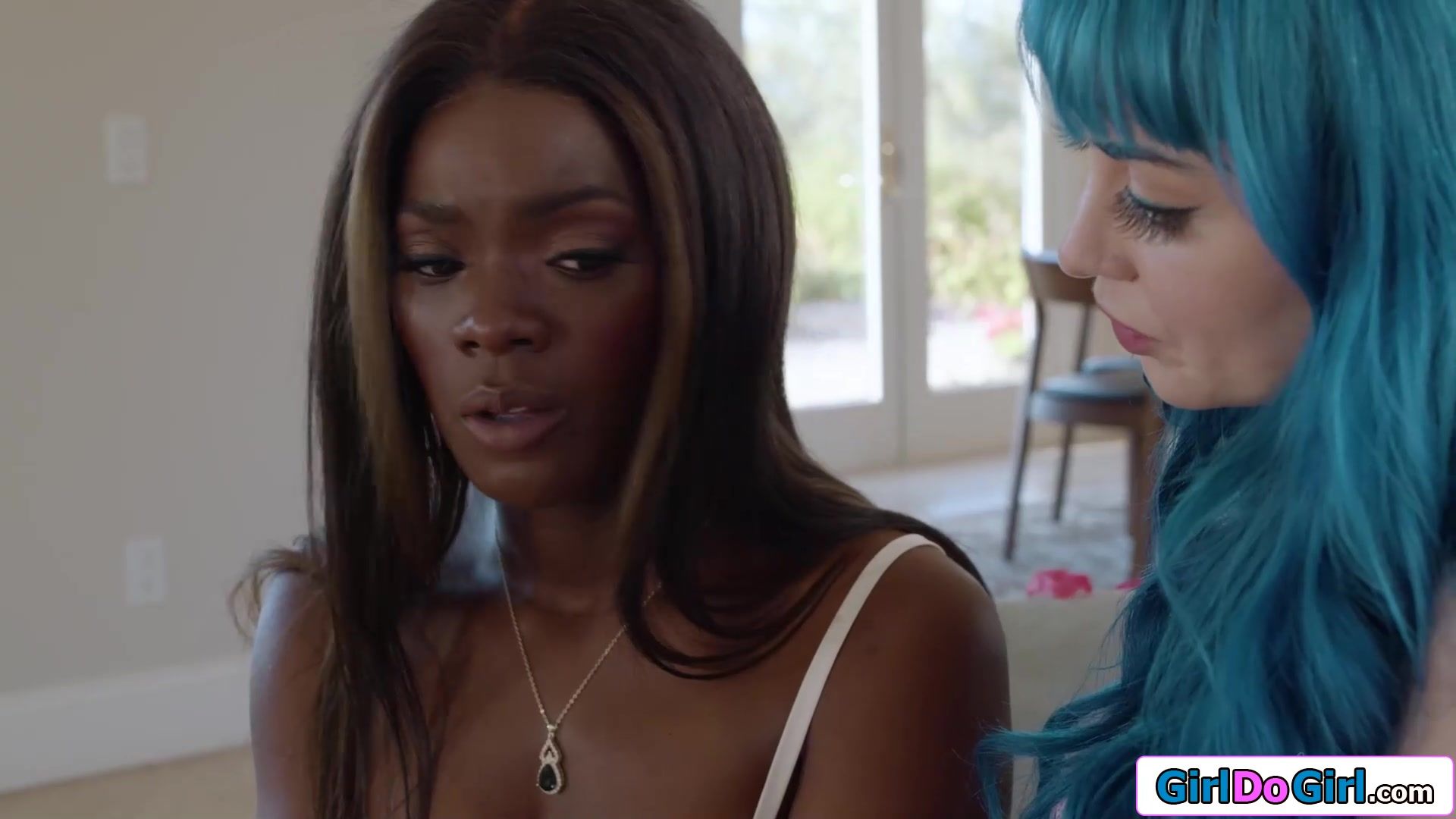 Busty Jewelz Blu admits feelings to her ebony bff Ana Foxxx.The besties start to kiss and the big tits babe licks her gfs hairy pussy.She facesits her with her shaved snatch until she orgasms.The ladies get into a 69er to eat each other out