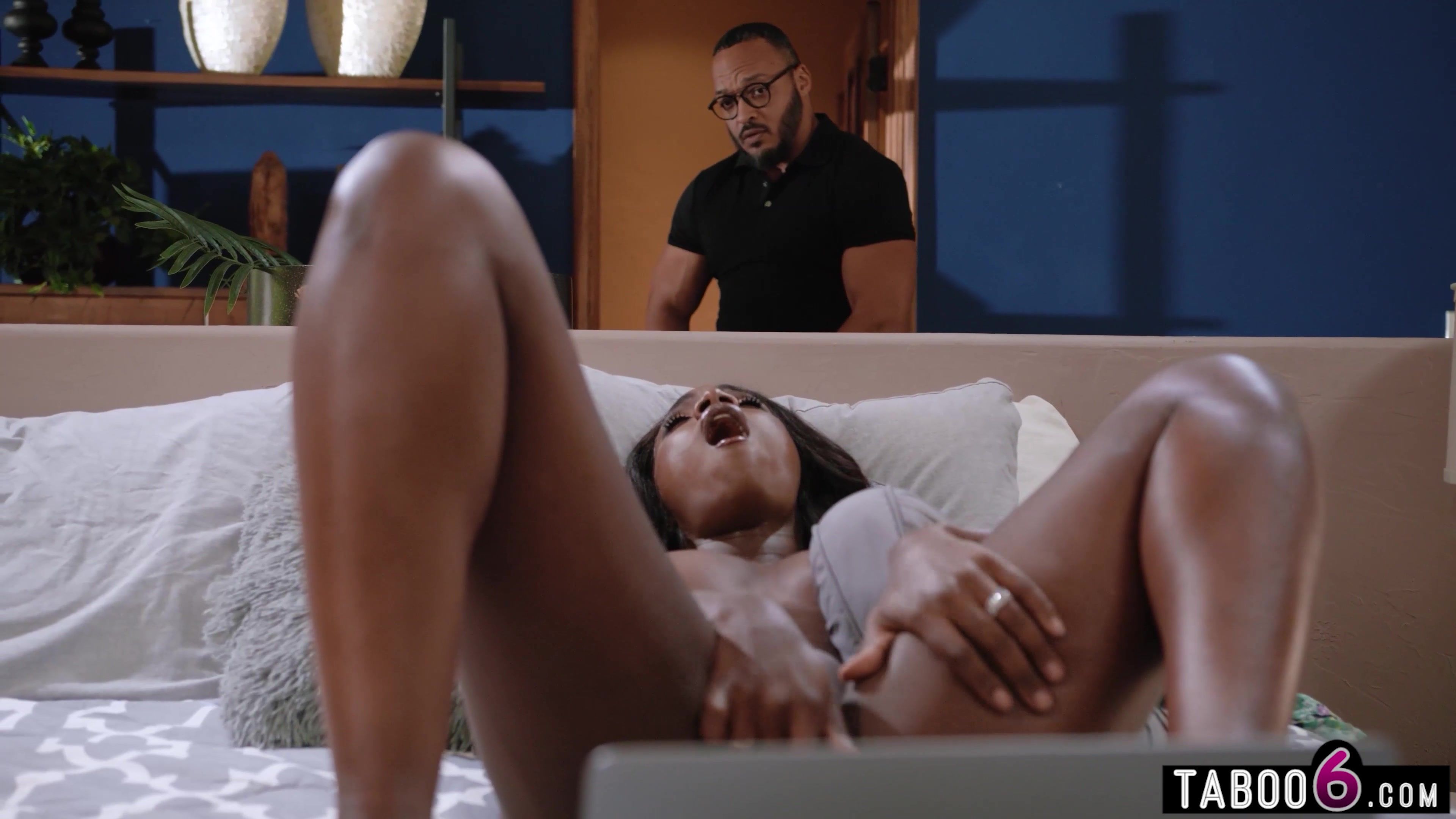 Ebony wife watches their honeymoon sex tapes and gets turned on by them and this black MILF then gets caught touching herself by her husband! After the surprize they decide to rekindle their old passions and have a good fuck session once again!