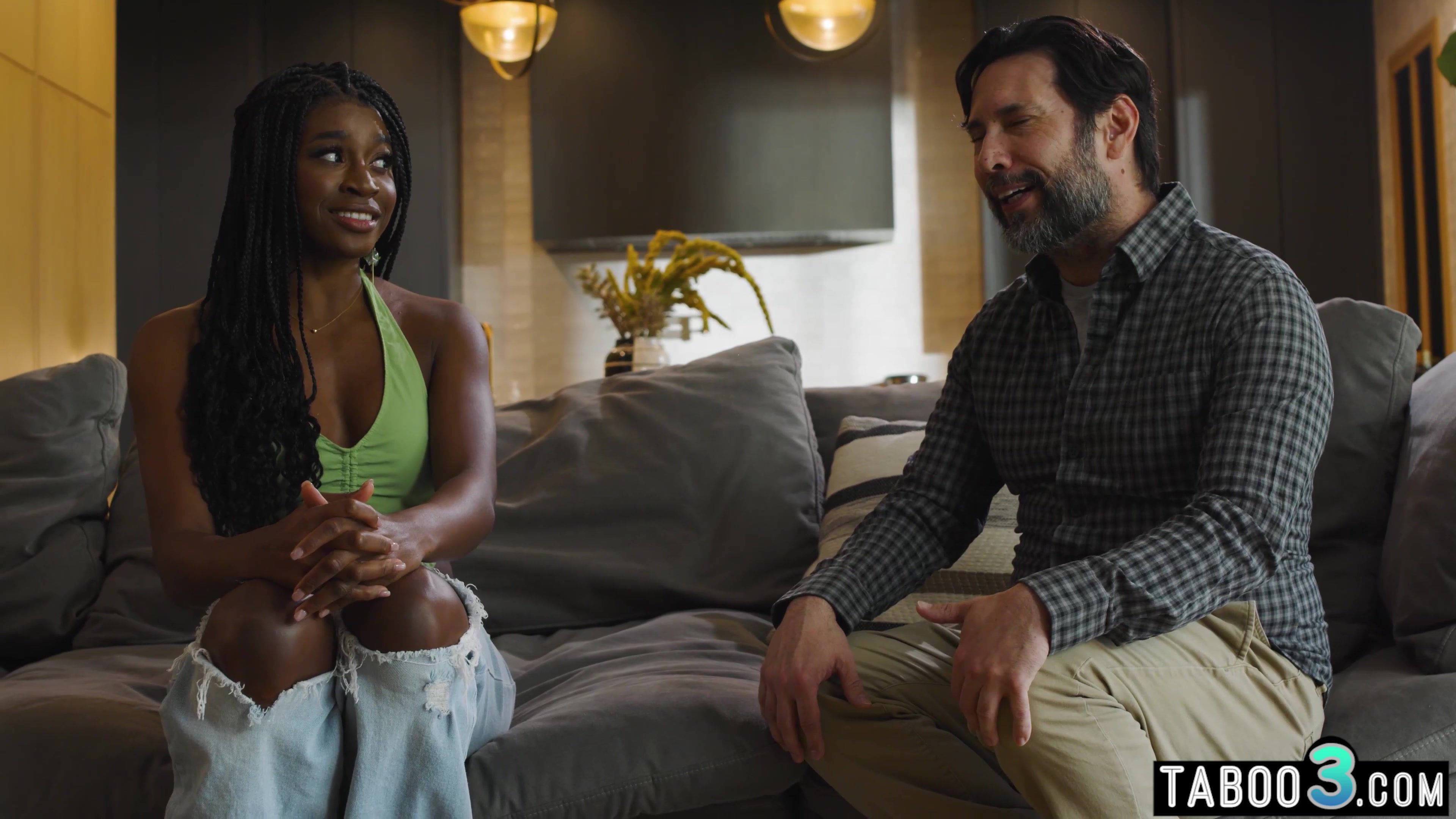 Angry dude wants revenge on his wife so he visits a hot black MILF Nicole Kitt wih natural tits to taboo fuck her hairy black pussy The black slut is impressed and lets him to lick and bang her dark cunt very hard