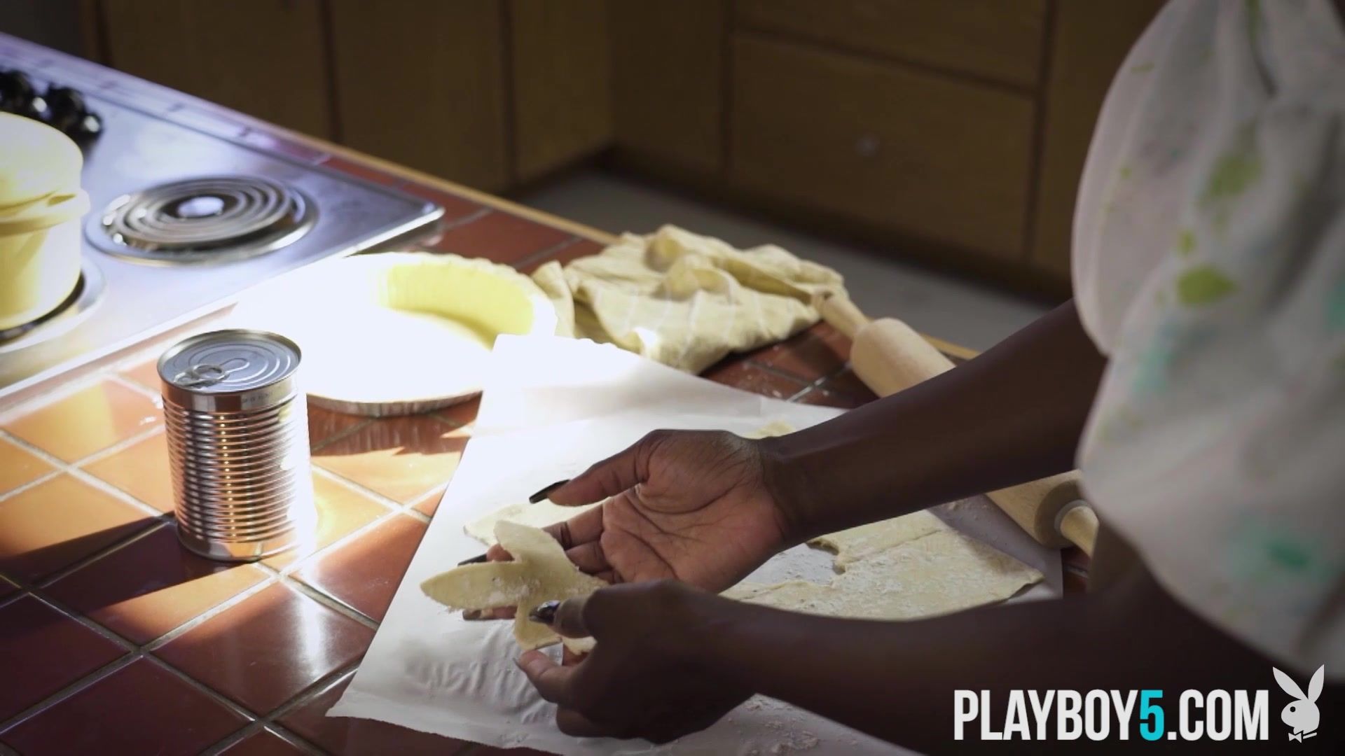 Big booty Ebony teen model Victoria Antoinette kitchen striptease