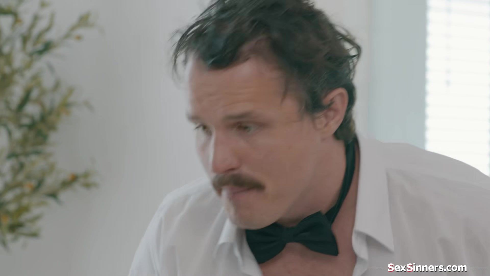 WTF do you care that I lied you still get to bang the bride.Ebony milf Ana Foxxx is horny and ready to cheat with the hot waiter.The small tits babe deepthroats his cock and is almost caught by her husband.She gets her hairy pussy licked and banged