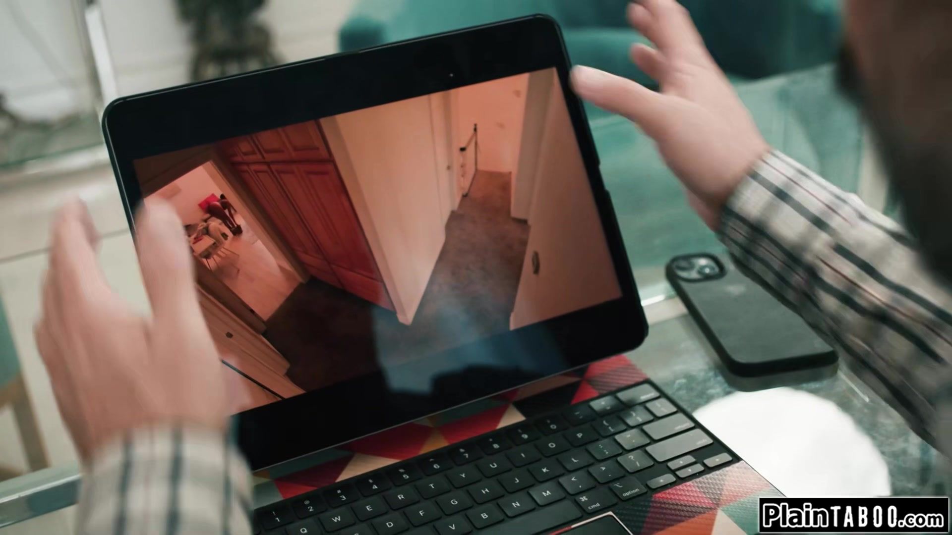 Stepdad caught a glimpse of his ebony stepdaughter Destiny Mira nude on the nannycam.She catches him with a camera in her room and makes him watch her.On his knees the black babe makes him eat her out.She deepthroats and squirts from fucking