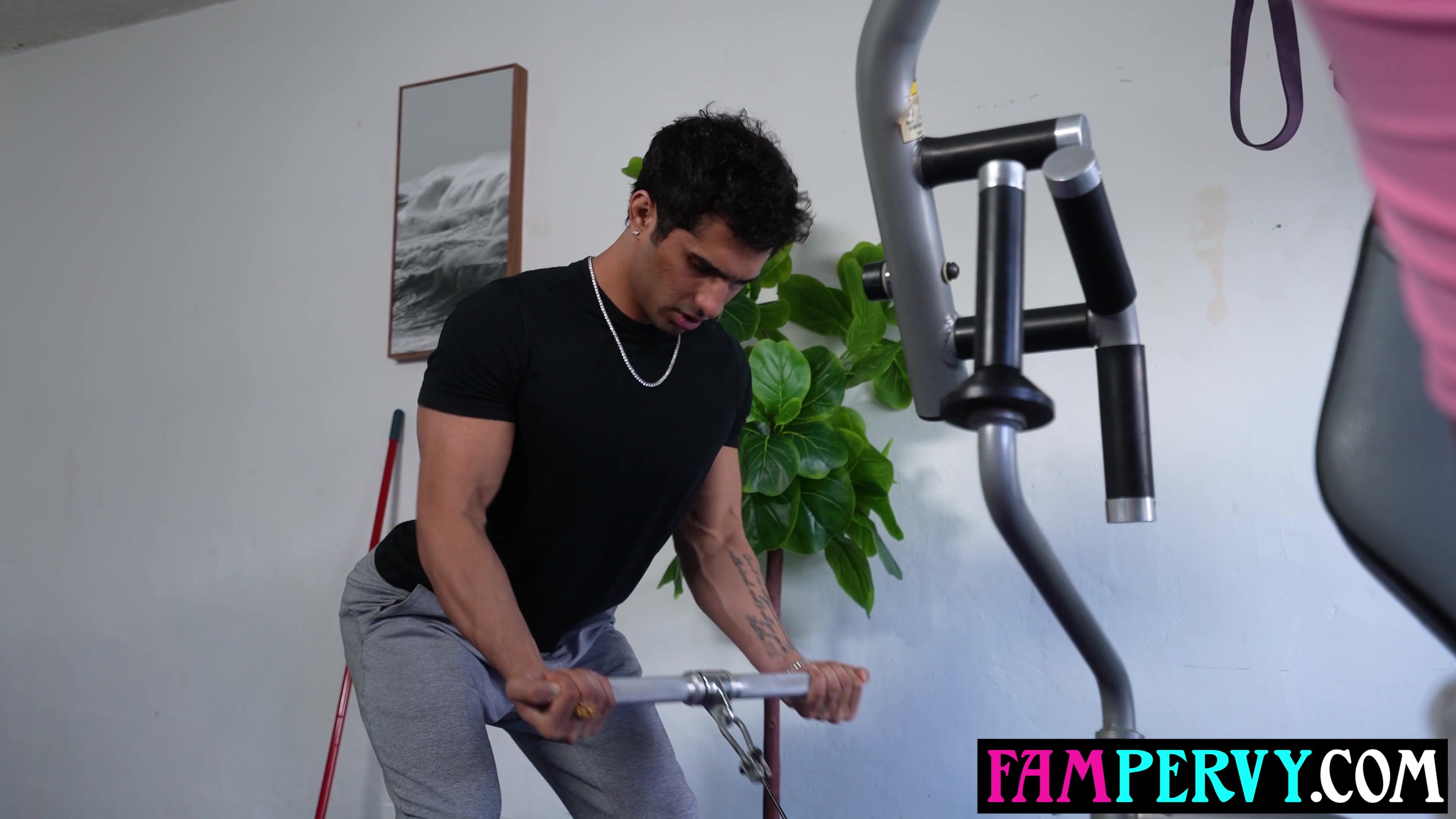 Big tits Ebony MILF stepsisters workout routine with hung stepbro
