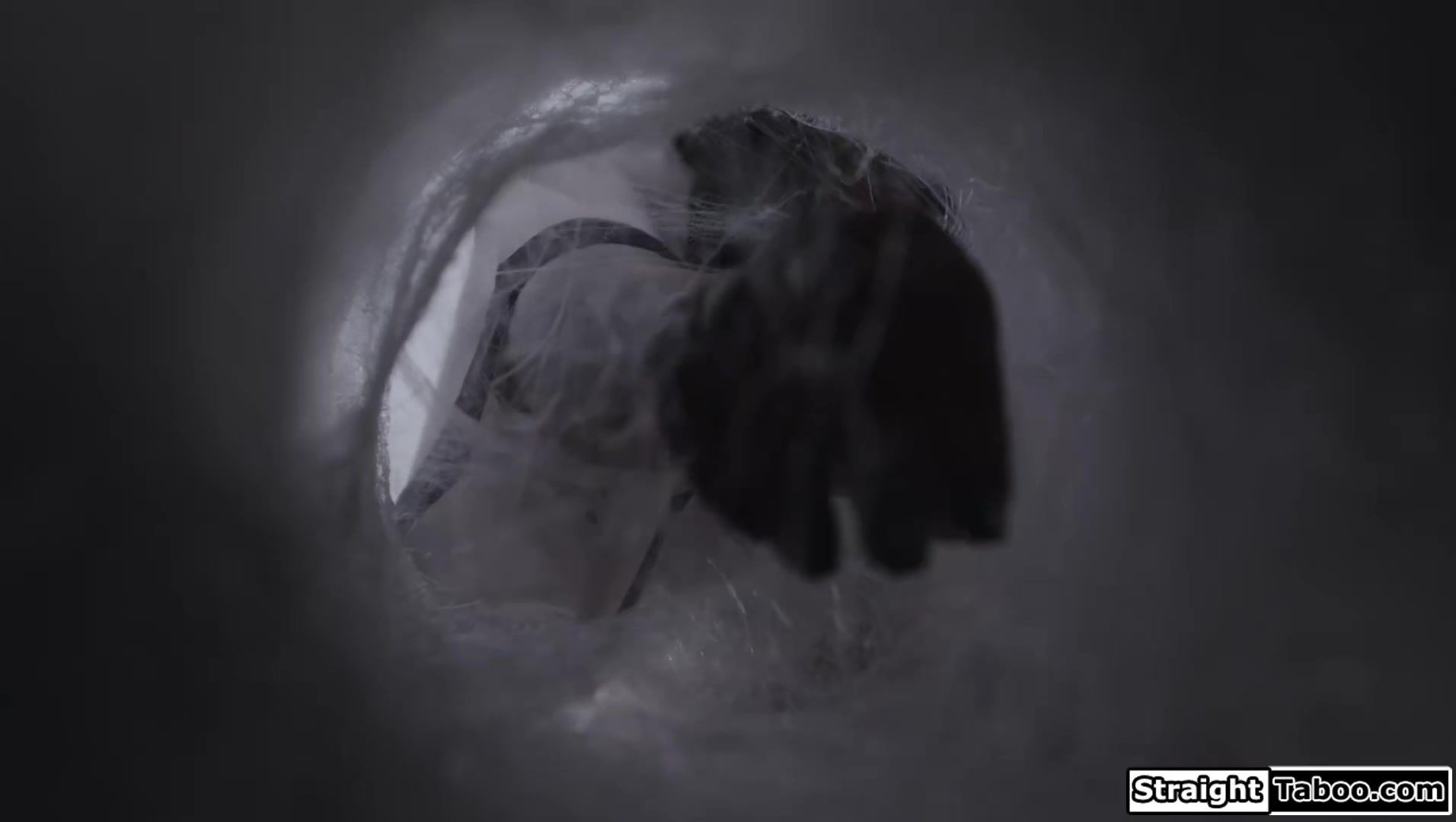 Guy is shocked to see his busty ebony wife August Sky has turned into a spider monster and is on top of her cocooned teen neighbor.The black milf will think about releasing him if she can suck both of their big cocks.The guys fuck the monstrosity