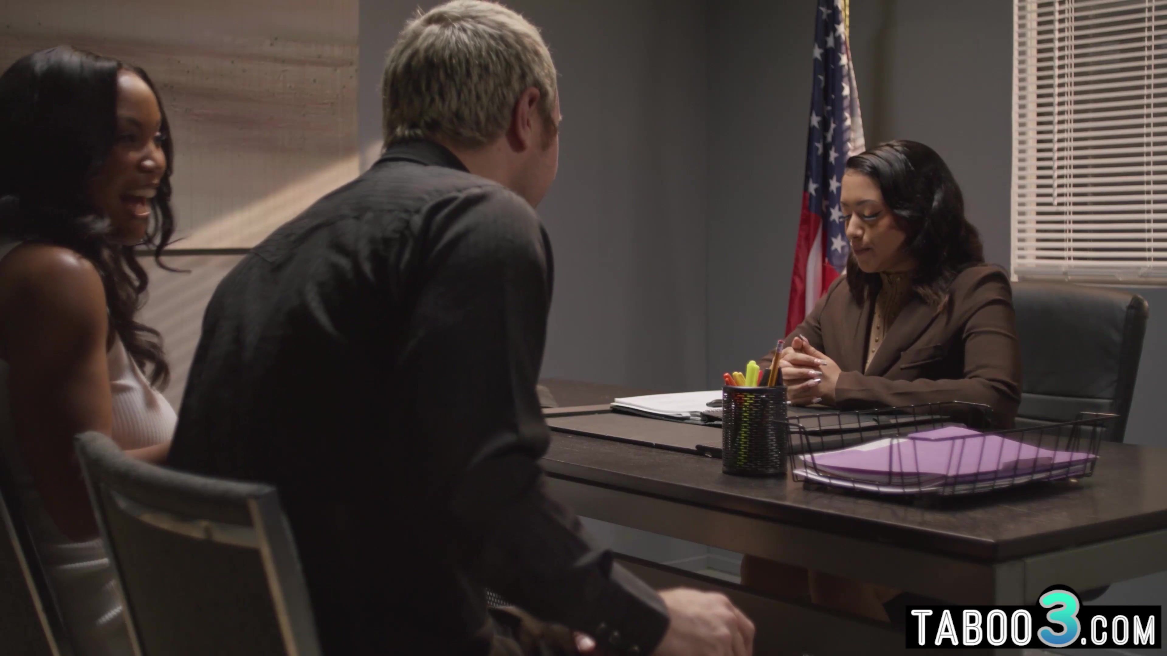 Ebony MILF August Skye and hubby are confronting with the latina teen guidance counselor Princess Emily who refuses to give out the confidential information so the naughty bisexual slut has to choose a unique way so she lures her into threesome sex