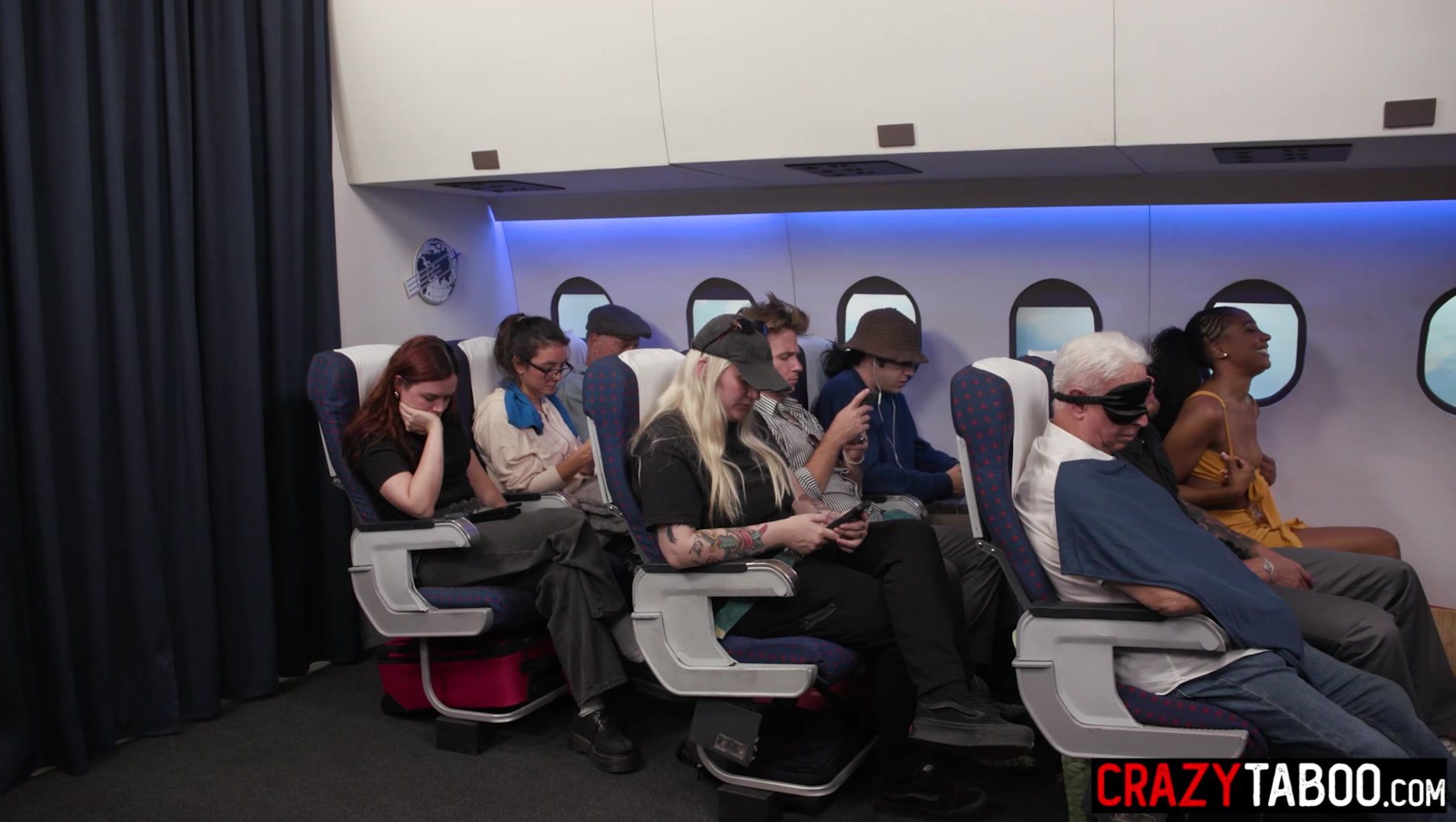Naughty big ass black MILF Olivia Jay riding big white cock during flight