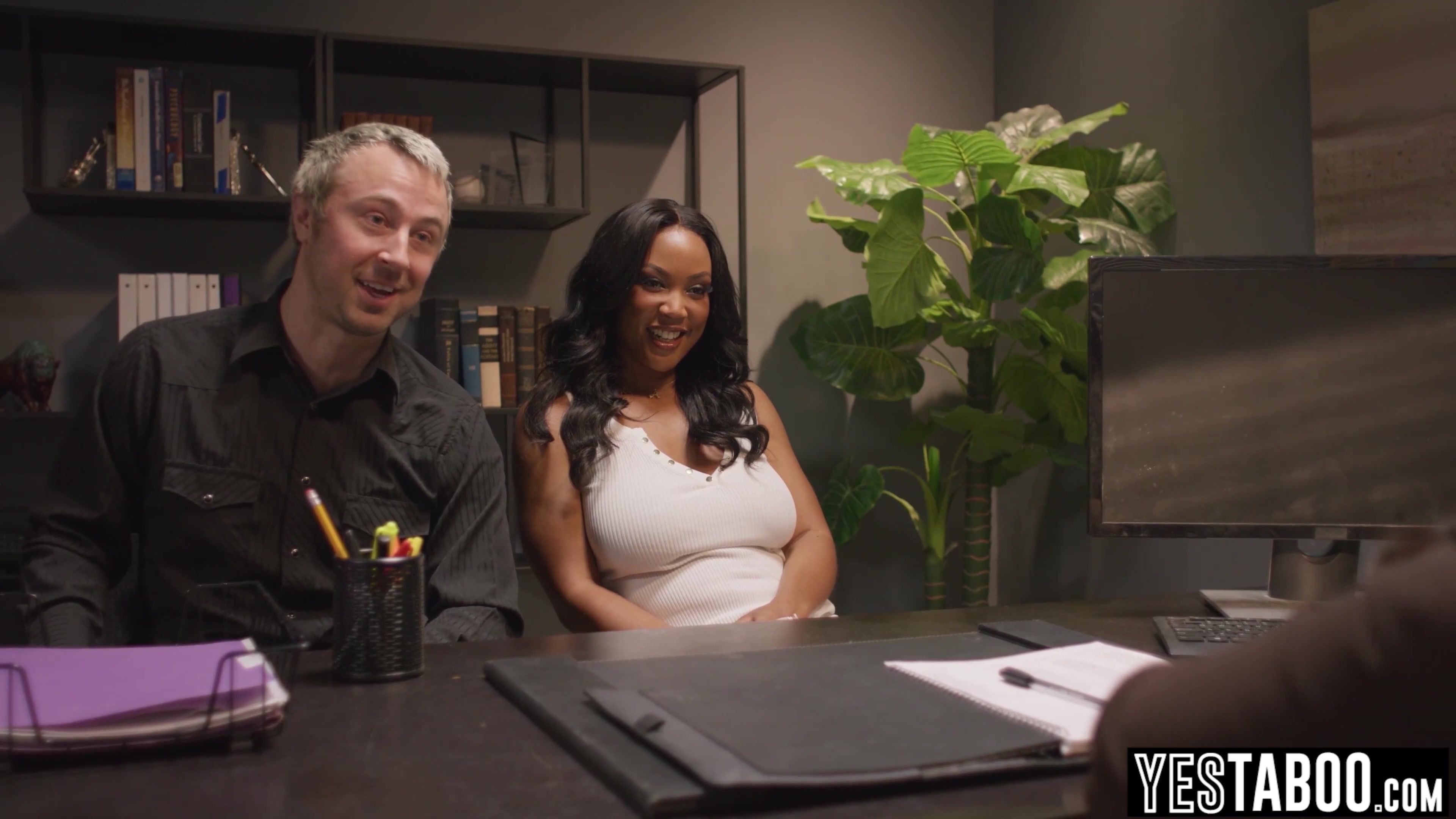 Asian therapist babe Princess Emily gets seduced in her office by a client whos also an old bully of hers as she blows his big dick together with his big boobs ebony MILF wife August Skye before she spreads her big ass for a hardcore interracial threesome