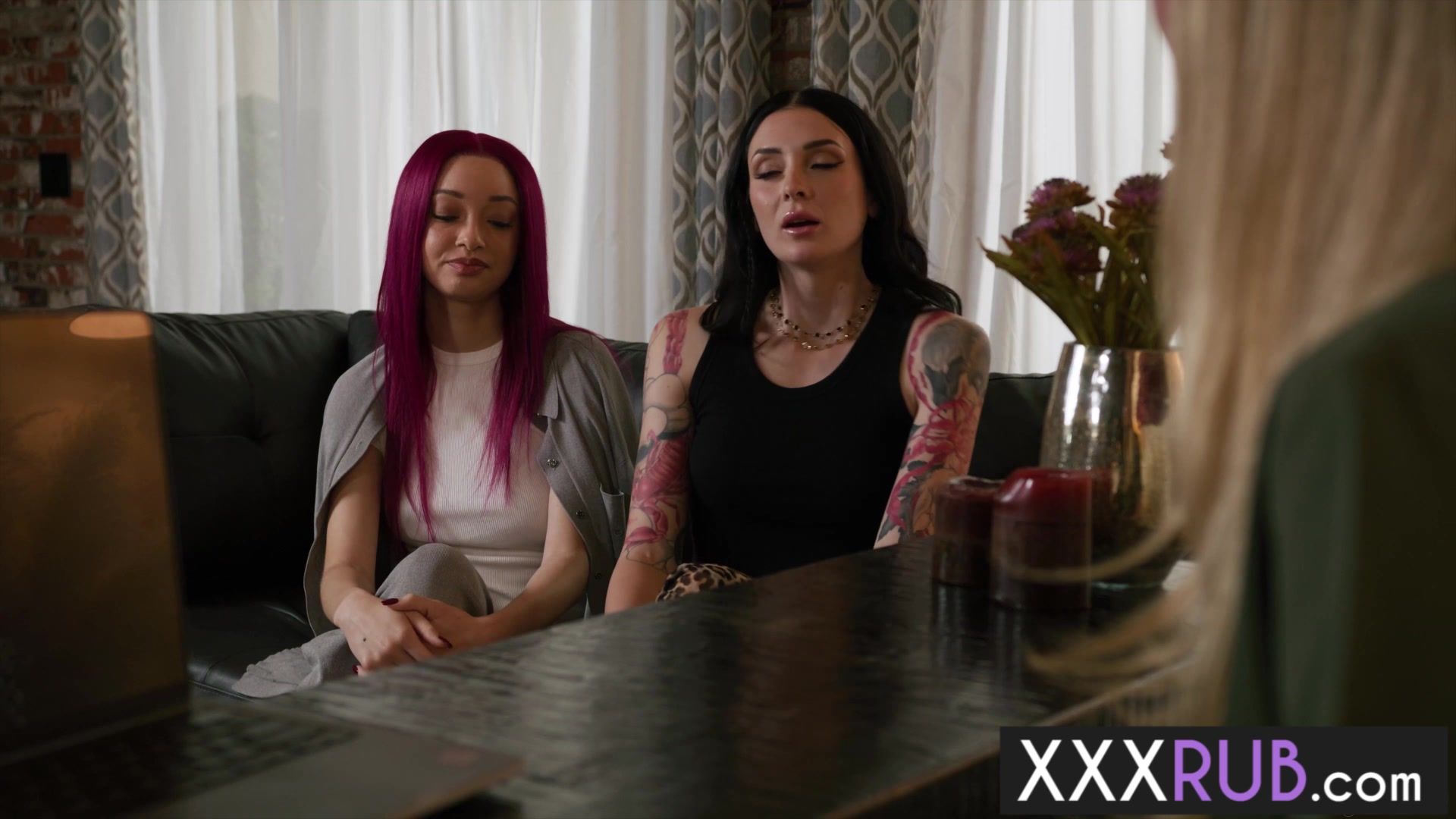 Lesbians Charlotte Sins and Scarlett Bloom fucked masseuse Addison Vodka